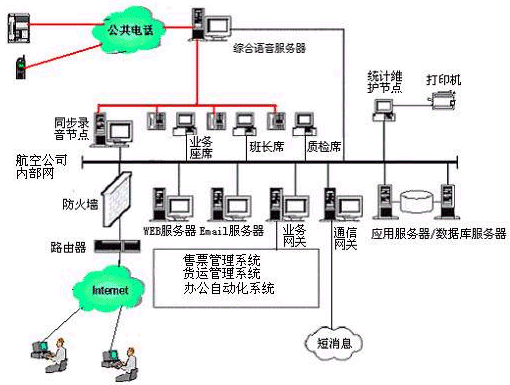 航空公司多媒體客戶(hù)服務(wù)中心的網(wǎng)絡(luò)拓?fù)浣Y(jié)構(gòu)圖