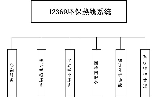 人民群眾利用電話、傳真、電子郵件、因特網(wǎng)、手機、短消息等撥打國家環(huán)?偩忠(guī)定的統(tǒng)一特服號碼(12369)進入12369環(huán)保熱線系統(tǒng),本系統(tǒng)依托環(huán)保局各類業(yè)務技術(shù)支持系統(tǒng)和網(wǎng)絡系統(tǒng),通過人工受理或自動語音服務等方式全天24小時不間斷地為客戶提供各種服務。
