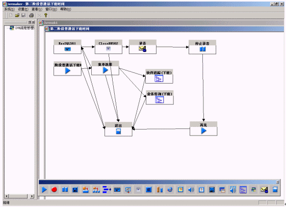 系統(tǒng)提供圖形化的語(yǔ)音流程生成環(huán)境,以方便用戶對(duì)語(yǔ)音流層進(jìn)行定制。流程生成器是一套可視化的流程設(shè)計(jì)工具,通過拖拉圖標(biāo)控件、鼠標(biāo)連線即實(shí)現(xiàn)呼叫中心CTI流程的制作,同時(shí),通過運(yùn)行時(shí)鏈接動(dòng)態(tài)連接庫(kù)(DLL),實(shí)現(xiàn)對(duì)業(yè)務(wù)數(shù)據(jù)庫(kù)的訪問;通過運(yùn)行時(shí)鏈接用戶DLL,最靈活地與用戶應(yīng)用系統(tǒng)結(jié)合;支持多種業(yè)務(wù)集成和動(dòng)態(tài)流程控制,方便用戶拓展業(yè)務(wù);采用事件驅(qū)動(dòng)機(jī)制、開放的結(jié)構(gòu),滿足各種語(yǔ)音系統(tǒng)的需要;支持不限個(gè)數(shù)、級(jí)數(shù)的IVR結(jié)構(gòu),可滿足用戶非常復(fù)雜的需求。