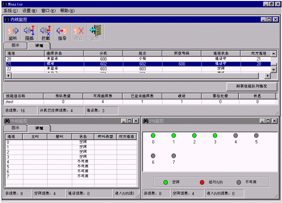 ·監(jiān)聽:班長(zhǎng)可監(jiān)聽座席與客戶之間的通話,而座席與客戶雙方都不會(huì)察覺。