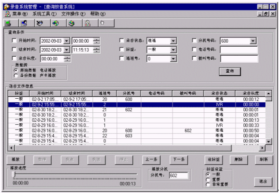 對(duì)查詢出來(lái)的聲音文件,可以選定一個(gè)或多個(gè)通過電話或聲卡播放。