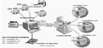 每一個 e-mail地址都可以對應(yīng)一個獨立的傳真分機號碼,當(dāng)有傳真呼入時,自動地將傳真發(fā)送給指定的接收者