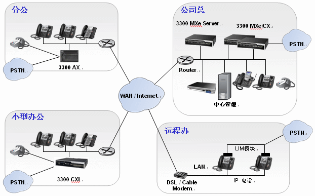 3300 ICP 系列提供一個具有高擴展性、彈性、功能強大的呼叫控制單元,在充分利用IP優(yōu)勢的同時能夠滿足基于傳統(tǒng)時分復用(TDM)技術的設備與公共電話網(wǎng)(PSTN)連接。