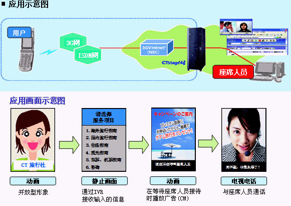 從日本通信市場的發(fā)展來看,目前手機市場已正式開始向3G對應手機市場轉(zhuǎn)換,3G手機的市場占有率已經(jīng)達到了手機用戶總量的30%以上(注2)。而從世界通信市場的發(fā)展趨勢分析,隨著3G的逐漸普及,電視電話、下載動畫等可靈活運用寬帶網(wǎng)的服務也已經(jīng)成為用戶慣于使用的服務項目和運營商競爭用戶的熱點。因此,在呼叫中心這個溝通企業(yè)與顧客聯(lián)系的核心產(chǎn)品中,除了最被廣泛使用的語音服務之外,靈活運用電視電話的服務也將成為企業(yè)和顧客交流的有效辦法和方便之橋。
