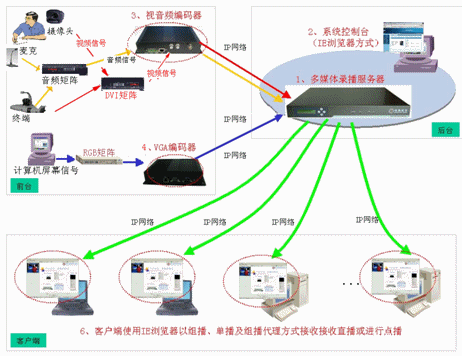 該系統(tǒng)能夠配合原有的各級視頻會議系統(tǒng)及新建設(shè)的視頻會議系統(tǒng)使用,可將整個會議的實時情況直播到辦公網(wǎng)絡(luò)內(nèi),同時錄制并存儲以便將來點播回放。