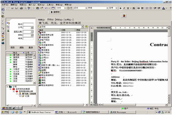 可對客戶(雇員)合同,根據(jù)合同階段、月份、合同金額、合同應(yīng)收應(yīng)付款、采購成本、客戶、銷售人員等條件進(jìn)行查詢和統(tǒng)計, 查詢統(tǒng)計結(jié)果以詳細(xì)列表及圖示進(jìn)行顯示。
