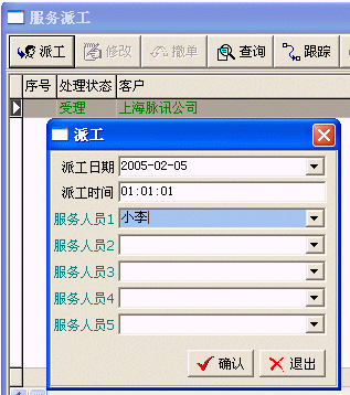 主要登記產(chǎn)品信息、客戶信息、服務(wù)合同、售后服務(wù)卡,接受客戶的投訴或請求,進(jìn)行派工和派工的跟蹤。
