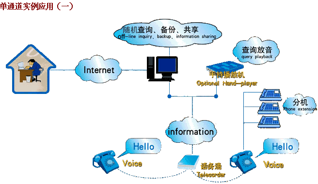 錄音記錄應(yīng)當(dāng)能夠方便地通過(guò)多種途徑回放,實(shí)現(xiàn)對(duì)錄音記錄資料的利用,這也是用戶(hù)配置電話(huà)錄音系統(tǒng)的最主要目的;胤趴梢酝ㄟ^(guò)我們公司開(kāi)發(fā)生產(chǎn)的選件手持播放器回放,通過(guò)網(wǎng)絡(luò)回放,通過(guò)聲卡在其它計(jì)算機(jī)上回放等多種方式來(lái)實(shí)現(xiàn)。