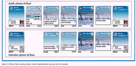 在最近一次諾基亞委托進行的IP多媒體研究中顯示,消費者喜歡增加了視頻共享的視頻電話,有趣的手機外觀被看作是非常重要的,而視頻共享也被認為是非常有用的,被看作是基于視頻短信的MMS的一個明顯的進步。消費者喜歡去共享的時刻是:例如在假期里,購物、舉家外出旅行,或者是一個周末的夜晚。通過視頻共享來展現你的位置及同行人員,可以確保人身的安全。同樣,視頻共享技術也可以應用于商業(yè)領域,如財產狀態(tài)監(jiān)視和遠程檢查野外工作等。