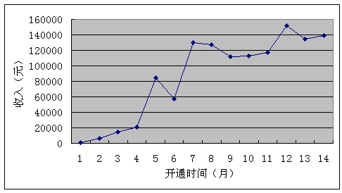 還是說(shuō)回來(lái)。河北鐵通這個(gè)業(yè)務(wù)從60線開始穩(wěn)健起步,如圖所示,在3個(gè)月的磨合時(shí)間里,它主要依靠口碑傳播,每個(gè)月才兩萬(wàn)元的收入,業(yè)務(wù)雖然開始贏利,但是并不可觀,怎樣才能快速提升業(yè)務(wù)價(jià)值?