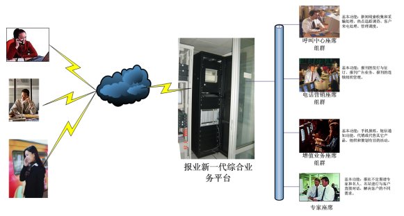 報業(yè)新一代綜合業(yè)務(wù)平臺包括:報業(yè)的呼叫中心、電話營銷平臺、增值業(yè)務(wù)平臺。