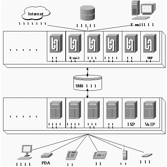 UMS系統(tǒng)將電話網(wǎng)、尋呼網(wǎng)、移動(dòng)網(wǎng)、互聯(lián)網(wǎng)相互融合,在各個(gè)不同網(wǎng)絡(luò)間提供通信和信息交換,向最終用戶提供在任何時(shí)間、任何地點(diǎn),以任何方式(如人工電話、自動(dòng)語(yǔ)音、自動(dòng)傳真、尋呼、手機(jī)短訊、手機(jī)上網(wǎng)、電子郵件、WWW瀏覽等)的個(gè)人通信服務(wù)、個(gè)人化信息內(nèi)容服務(wù)和個(gè)人化電子商務(wù)服務(wù)。