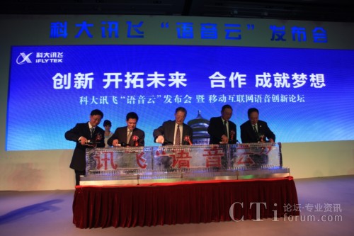 CTI論壇(ctiforum)10月29日消息(記者 潘婷婷): 2010年10月28日,“科大訊飛‘語音云’發(fā)布會(huì)暨移動(dòng)互聯(lián)網(wǎng)語音創(chuàng)新論壇”在北京香格里拉飯店隆重舉行?拼笥嶏w作為中國語音產(chǎn)業(yè)領(lǐng)導(dǎo)者,在業(yè)界率先推出“訊飛語音云”,對于促進(jìn)國家新近確定的七大戰(zhàn)略新興產(chǎn)業(yè)之一的“新一代信息技術(shù)”發(fā)展具有重大意義,將推動(dòng)移動(dòng)互聯(lián)網(wǎng)邁入語音時(shí)代,創(chuàng)新無限豐富的應(yīng)用、創(chuàng)造廣闊的市場藍(lán)海。因此,此次發(fā)布會(huì)得到了各界的高度關(guān)注,各相關(guān)政府部門領(lǐng)導(dǎo),聯(lián)想、騰訊、愛國者、優(yōu)視科技、播思通訊等各行業(yè)及移動(dòng)互聯(lián)網(wǎng)領(lǐng)軍企業(yè)的代表,媒體界朋友,匯聚一堂、共襄盛舉,并就移動(dòng)互聯(lián)網(wǎng)與語音產(chǎn)業(yè)的相互融合、創(chuàng)新發(fā)展、合力共贏進(jìn)行了深入熱烈的探討。