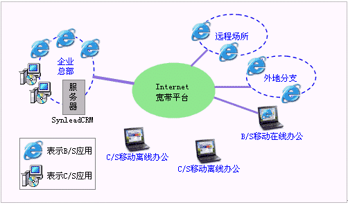 SynleadCRM企業(yè)版4.0可以擴(kuò)充C/S客戶端。B/S架構(gòu)在Internet平臺(tái)上具有很好的多分支機(jī)構(gòu)擴(kuò)展性和單邊維護(hù)性(即只是維護(hù)服務(wù)器),而C/S架構(gòu)往往通過(guò)Internet