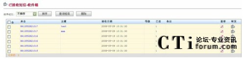 通過(guò)Web方式的客戶端收取用戶發(fā)來(lái)的短信,可以按日期時(shí)間、主題、內(nèi)容、主叫號(hào)碼等進(jìn)行查詢和排序;將收到的短信轉(zhuǎn)發(fā)給其它個(gè)人手機(jī)或用戶群;