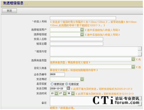 為適應(yīng)不同的企業(yè)的運(yùn)營(yíng)規(guī)模,系統(tǒng)內(nèi)置兩種移動(dòng)短消息收發(fā)接口:一種是使用系統(tǒng)的短消息收發(fā)模塊(有單通道或多通道兩種),可以適應(yīng)小容量的短消息收發(fā)處理;另一種是使用運(yùn)營(yíng)商或業(yè)務(wù)提供商(SP)的短信業(yè)務(wù)接口,可以適應(yīng)容量比較大的短消息收發(fā)處理。