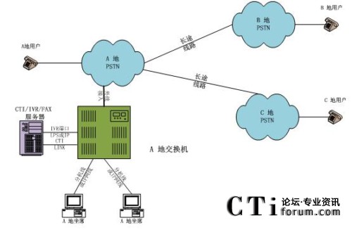 CTI組網(wǎng)型網(wǎng)絡(luò)分布式呼叫中心解決方案拓?fù)鋱D