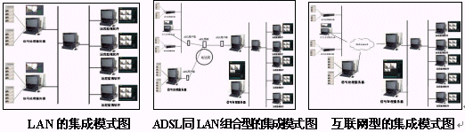 本公司的數(shù)字式視頻監(jiān)控系統(tǒng)各個組成要素之間的物理連接沒有做任何限制及規(guī)定,只要支持國際性的通信標準協(xié)議HTTP,就可以集成出一個面向于某種具體需求的系統(tǒng)。下面列舉了本系統(tǒng)3種典型應用的拓撲模式圖。