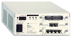 MX25 中存在三個可以插入即插式模塊的插槽。這些模塊提供與電話和傳真機等設(shè)備的連接,以及與 PSTN 的連接。其中,一個 FXS 模塊用于連接到模擬電話和傳真機。一個 FXO 模塊用于使用模擬方式連接到 PSTN。一個 BRI S/T 模塊用于使用 ISDN BRA 連接到 PSTN。BRA 接口既支持 Japanese ISDN 也支持 ETSI ISDN。MX25 可以容納上述卡的任意組合。提供了一個 T1/E1 模塊,用于使用 T1 或 E1 連接到 PSTN。這些卡中只能有一個插入到 MX25 中,并且只能使用一個 T1 或 E1 電路。用于 T1 的協(xié)議可以是 CAS 或 ISDN。支持的 CAS 協(xié)議包括 Loop Start、Ground Start、Immediate Start 和 E&M Wink Start。支持的 ISDN 協(xié)議包括 Lucent Custom、Nortel Custom、US National 和 INS1500。用于 E1 的協(xié)議是 ETSI ISDN。