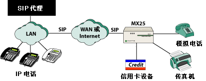 MX25 可以提供模塊化 SIP 網(wǎng)關(guān)的功能,這對于企業(yè)的許多應(yīng)用程序是很有益的。其撥號計劃實現(xiàn)了多個 SIP 服務(wù)器(內(nèi)部和外部)以及電話電路之間的路由,這使得它幾乎可以在每一個 VoIP 應(yīng)用程序中工作。