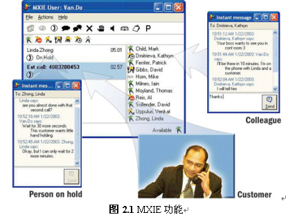 使用MXIE還提供了文本交流、收發(fā)語音郵件、收發(fā)傳真、發(fā)起電話會(huì)議或視頻會(huì)議、綁定話機(jī)等多種實(shí)用的溝通功能。除此以外,MXIE還集成了軟件電話功能,用戶外出時(shí)可以使用它來接聽或撥打電話。