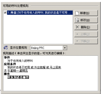 用戶可以很方便地設(shè)置自己的來電處理規(guī)則 ,如:設(shè)置外出時(shí),所有來電轉(zhuǎn)到語音郵箱。