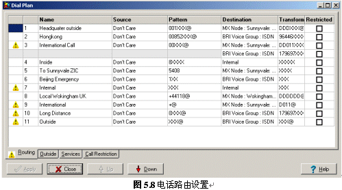 管理員還可以設(shè)定所有電話的處理規(guī)則,如:電話的路由規(guī)則(節(jié)約費(fèi)用)、多點(diǎn)間使用的語音壓縮方式(節(jié)約帶寬)等。
