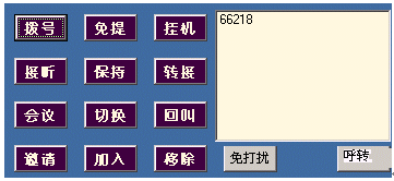 ·接聽:如果有呼叫進(jìn)來,平臺(tái)會(huì)把呼入方的號(hào)碼通過事件方式來返回,你可以根據(jù)此號(hào)碼,把相關(guān)用戶資料檢索出來并顯示在屏幕上,從而實(shí)現(xiàn)屏幕彈出的功能,這時(shí),通過此接聽功能,來建立話路。