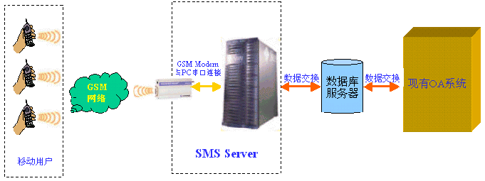 短信收發(fā)服務器是通過數(shù)據(jù)交換的方式與您的系統(tǒng)進行連接,目前支持數(shù)據(jù)庫的交換方式,可以通過Oralce、MS SQL SERVER 、MS ACCESS等關(guān)系型數(shù)據(jù)庫和現(xiàn)有系統(tǒng)進行數(shù)據(jù)交換。
