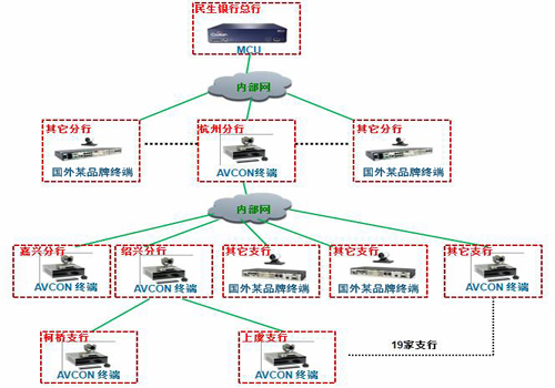 民生銀行杭州分行是民生銀行總行設(shè)在浙江省的一級分行。為了提高工作效率,增強(qiáng)內(nèi)部溝通,民生銀行杭州分行需要建設(shè)以其為中心并覆蓋所有下屬分支機(jī)構(gòu),具備遠(yuǎn)程、實(shí)時(shí)、交互功能的高清視頻會(huì)議系統(tǒng)。建設(shè)高清視頻會(huì)議系統(tǒng)基于“操作更方便、運(yùn)行更穩(wěn)定、功能更全面、圖像更清晰”原則,充分利用現(xiàn)有民生銀行杭州分行網(wǎng)絡(luò)資源、技術(shù)資源,打造技術(shù)領(lǐng)先、設(shè)備先進(jìn)、效果良好的優(yōu)質(zhì)網(wǎng)絡(luò)視頻會(huì)議系統(tǒng)。從使用上滿足三大主要功能: