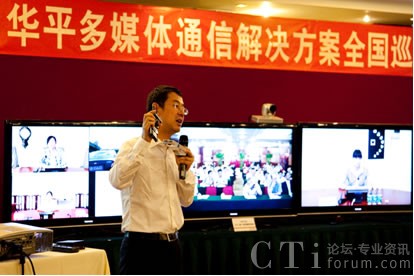 華平股份總經(jīng)理劉曉露先生發(fā)表了“AVCON 多媒體通信系統(tǒng)解決方案”的演講并穿插了精彩的產(chǎn)品演示。在現(xiàn)場(chǎng)演示中,華平新推出的無(wú)線視頻終端大放異彩,基于3G網(wǎng)絡(luò)環(huán)境傳輸?shù)綍?huì)場(chǎng)的流暢、艷麗的高清視頻,技驚全場(chǎng)。