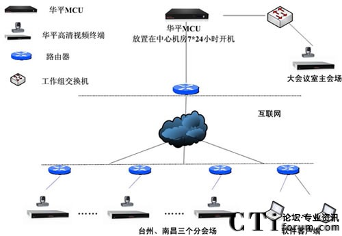 華平根據(jù)東森控股的實(shí)際需求,為用戶搭建了覆蓋上海、南昌、臺州辦公區(qū)、臺州營業(yè)部的高標(biāo)清混合組網(wǎng)和軟硬件混合組網(wǎng)方案。系統(tǒng)基于公共互聯(lián)網(wǎng)實(shí)現(xiàn)部署,并充分利用了華平多種網(wǎng)絡(luò)接入混合的優(yōu)勢,并采取MCU雙網(wǎng)卡接入解決方案,全面實(shí)現(xiàn)了電信、網(wǎng)通的網(wǎng)絡(luò)良好互通,系統(tǒng)極大的拓展了應(yīng)用的范圍,即使在差旅途中,只要能接入Internet網(wǎng)絡(luò),用戶就可以輕松地參與會議交流,如同身與各方坐一個(gè)會議室。系統(tǒng)還提供強(qiáng)大的數(shù)據(jù)輔助功能,參會者可以將各種需要交流的數(shù)據(jù)、圖形、報(bào)表、文字等信息同步顯示給所有相關(guān)人員,方便的進(jìn)行工作交流,業(yè)務(wù)匯報(bào)和討論等,使異地溝通變的更加簡單和自如。