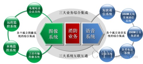 綜合集成建設(shè)主要內(nèi)容:建設(shè)一個(gè)統(tǒng)一的綜合管理平臺(tái),將軟硬件進(jìn)行高度集成,實(shí)現(xiàn)圖像、語(yǔ)音、數(shù)據(jù)高度融合,形成統(tǒng)一的信息資源樹,按需調(diào)用,資源共享。并通過(guò)網(wǎng)絡(luò)集成,實(shí)現(xiàn)各類基礎(chǔ)通信網(wǎng)絡(luò)“通道化”,形成統(tǒng)一互聯(lián)的IP網(wǎng);通過(guò)音頻集成,實(shí)現(xiàn)語(yǔ)音交換“總機(jī)化”,語(yǔ)音終端“分機(jī)化”;通過(guò)視頻集成,實(shí)現(xiàn)視頻管理 “頻道化”;通過(guò)數(shù)據(jù)集成,實(shí)現(xiàn)數(shù)據(jù)管理 “目錄化”,全面滿足日常管理和戰(zhàn)時(shí)通信保障的要求。綜合集成項(xiàng)目包括圖像綜合管理平臺(tái)、語(yǔ)音綜合管理平臺(tái)、一體化消防業(yè)務(wù)平臺(tái)等三個(gè)部分的建設(shè)。