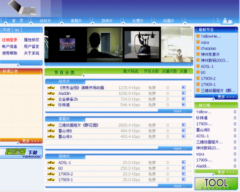 隨著互聯(lián)網(wǎng)在中國的普及和網(wǎng)絡(luò)基礎(chǔ)建設(shè)的完善,越來越多的人開始上網(wǎng),隨之而來的就是各種網(wǎng)絡(luò)服務(wù)的大行其道,我們就來看看最近很火的網(wǎng)絡(luò)視頻點(diǎn)播VOD。領(lǐng)導(dǎo)下命令,對目前視頻點(diǎn)播產(chǎn)品做一個評估,沒有辦法,只有照辦。既然要評論自然要找最好的來感受一下。南京遠(yuǎn)古的Web VOD5.0。在技術(shù)上較為領(lǐng)先,根據(jù)南京遠(yuǎn)古官方宣布,該系統(tǒng)可以達(dá)到1000并發(fā)。十分好奇,終于托人找到了體驗(yàn)版本。