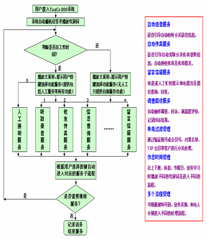 - 提供自動(dòng)聽(tīng)取錄音信息、索取傳真文件、發(fā)送或接收傳真、語(yǔ)音留言等服務(wù);