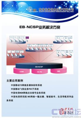 本次參展的EB-NCSP是由EB自主研發(fā),可在PLMN/3G/NGN網(wǎng)絡(luò)上商用的核心業(yè)務(wù)平臺(tái),本系統(tǒng)面向國(guó)內(nèi)電信運(yùn)營(yíng)商和眾多的增值服務(wù)提供商及虛擬運(yùn)營(yíng)商,獨(dú)立于底層通信網(wǎng)絡(luò),提供典型的增值業(yè)務(wù),提供增值服務(wù)的開(kāi)放業(yè)務(wù)接口。EB-NCSP主要包括:應(yīng)用服務(wù)器AS、媒體服務(wù)器MS,是一個(gè)功能完備并開(kāi)放的應(yīng)用平臺(tái)。本系統(tǒng)提供規(guī)范而靈活的API接口,支持SIP協(xié)議、中國(guó)INAP/CAP/MAP/ISUP/BICC/H.248/CMPP協(xié)議規(guī)范等;全面支持移動(dòng)網(wǎng)絡(luò)向下一代網(wǎng)絡(luò)-3G發(fā)展所需要的語(yǔ)音、數(shù)據(jù)、多媒體等智能和增值業(yè)務(wù)的平臺(tái),從而實(shí)現(xiàn)真正的跨網(wǎng)絡(luò)的、綜合的、以用戶為中心的業(yè)務(wù)提供平臺(tái)。