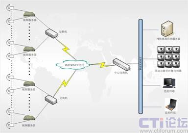 本系統(tǒng)網(wǎng)絡(luò)傳輸采用有線、光纖及無線相結(jié)合的方式,在有條件的地方采用有線的方式,傳輸距離較遠(yuǎn)時采用光纖傳輸,在布線比較困難的情況下采用無線傳輸?shù)姆绞健?br />