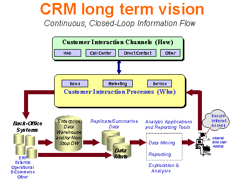 隨著全球Internet時代的到來,電子商務(wù)的飛速發(fā)展以及全球市場競爭的加劇和客戶需求多元化的要求,給傳統(tǒng)的商業(yè)經(jīng)濟模式帶來了巨大的沖擊。傳統(tǒng)企業(yè)基于4個P(product產(chǎn)品, place渠道, price價格, promotion促銷)的競爭模式已越來越不適應(yīng)社會經(jīng)濟的發(fā)展,商品品質(zhì)的區(qū)別越來越小,產(chǎn)品的同質(zhì)化傾向越來越強。一味單純地在銷售渠道、價格競爭,促銷手段等方面大量投入,更會提高產(chǎn)品的成本,未必真正能給企業(yè)帶來可觀的利潤。國內(nèi)彩電,VCD傾銷大戰(zhàn)是一個很好的例證。如何由基于產(chǎn)品的經(jīng)營理念向基于客戶關(guān)系的經(jīng)營理念轉(zhuǎn)化,是各大企業(yè)所面臨的主要難題。充分了解市場,充分了解客戶,可以說未來市場的競爭就是服務(wù)手段的競爭,就是發(fā)展客戶關(guān)系的競爭。