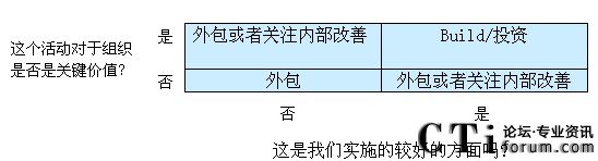如果這個活動是關(guān)鍵任務(wù),而且有時(shí)候你有穩(wěn)固的內(nèi)部資源和已經(jīng)證明的能力,那么你很可能想保持自建活動,并內(nèi)部投資其增長。但是,如果這個活動不是那么重要,或者你現(xiàn)在在做的事并沒有做好,那么外包的意義就更大。