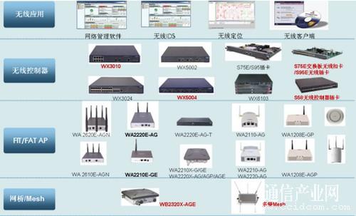 H3C具有FIT AP/FAT AP全系列無線產(chǎn)品。高端無線控制器產(chǎn)品WX6103,是業(yè)界第一款支持萬兆的、采用多核處理器的產(chǎn)品,單個控制板可以提供高達(dá)640個AP的接入、管理能力。WX3024無線控制器,集成24個交換口,同時支持POE+以太網(wǎng)供電功能。H3C同時還提供插卡形式的控制器,配合S9500、S7500系列交換機使用,具備更高的系統(tǒng)容量、性能及可靠性。