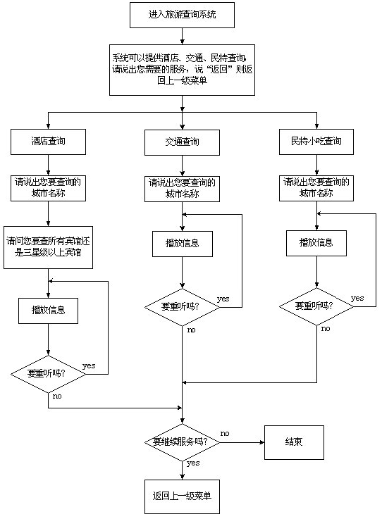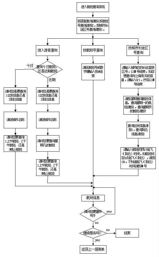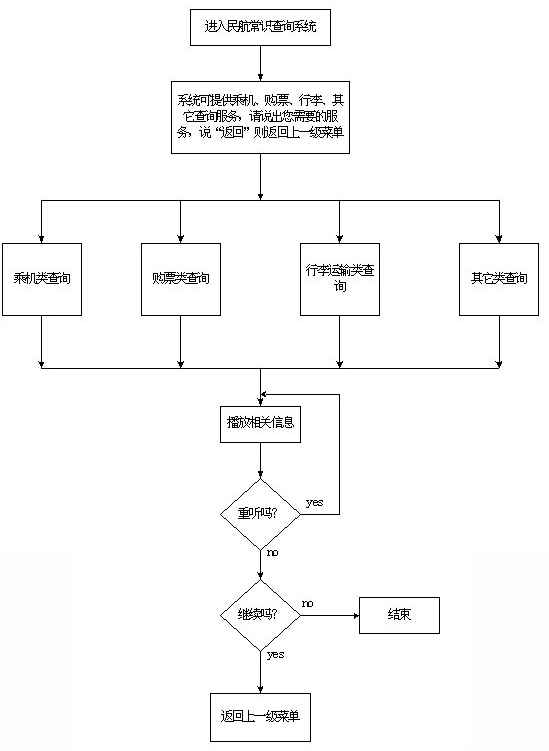 該系統(tǒng)主要采用語音技術(shù)實現(xiàn)航班信息查詢,系統(tǒng)的主業(yè)務流程如圖一至五示。