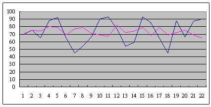 答案很明顯,就是最下面粉紅色那一條線代表的座席員,因為她的平均通話時長非常的不穩(wěn)定,忽高忽低。