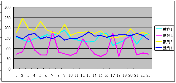 這里的四條線,分別代表了一個座席員的情況,黃色這條線代表的座席員在1號的時候,平均通話時長差不多是180秒,二號增加到250秒,之后慢慢減少到17號的150秒,以及23號的170秒。