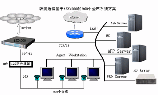 基于iSX4000構建的大容量坐席拓撲圖