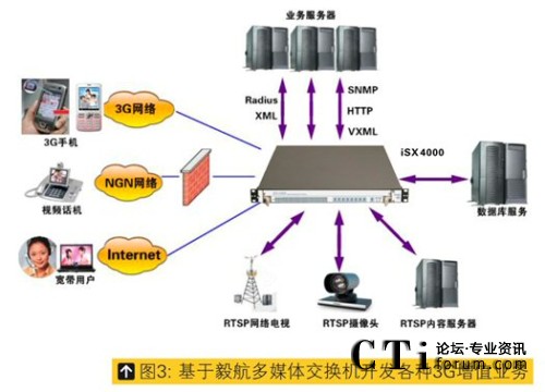 隨著中國3G用戶的日益增多,基于3G網(wǎng)絡(luò)的增值業(yè)務(wù)也日益受到各大運(yùn)營商重視,而且運(yùn)營商也寄希望于形形色色的增值業(yè)務(wù)能夠帶動3G用戶的增長,針對這種狀況以及國內(nèi)三種運(yùn)營商制式(TD-SCDMA、WCDMA、CDMA2000),毅航發(fā)布專門針對3G增值業(yè)務(wù)或2G-3G混合增值業(yè)務(wù)的真正一體化開發(fā)平臺,基于此平臺開發(fā)者無需關(guān)心3G網(wǎng)絡(luò)接口、3G網(wǎng)絡(luò)制式、3G網(wǎng)絡(luò)信令及3G視頻編解碼而直接開發(fā)3G業(yè)務(wù)流程即可,是目前國內(nèi)外最簡單、單機(jī)承載容量最大的3G增值業(yè)務(wù)開發(fā)平臺,是在毅航通信 iSX4000 通用業(yè)務(wù)平臺的基礎(chǔ)上增加視頻模塊即可將原來在2G上的所有應(yīng)用平滑升級到3G,升級周期只需要1-2周即可,因此基于毅航增值業(yè)務(wù)平臺的3G示范應(yīng)用也很快會在中國三個(gè)不同制式的3G網(wǎng)絡(luò)上開通。