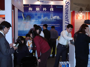2005年5月18日在北京長城飯店召開的《2005中國IP語音網(wǎng)絡(luò)、軟交換及SIP研討會(huì)暨展覽會(huì)》上,海狼科技展臺(tái)前人頭攢動(dòng),很多商家對(duì)海浪科技技術(shù)和產(chǎn)品的表現(xiàn)感到相當(dāng)滿意,并有新加坡、臺(tái)灣客戶現(xiàn)場購買產(chǎn)品。