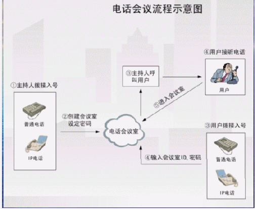 - 多方電話會議功能,最多可以實(shí)現(xiàn)16方通話。電話會議介紹(當(dāng)會議室中僅有一個人的時(shí)候,聽到的是等待音樂)。