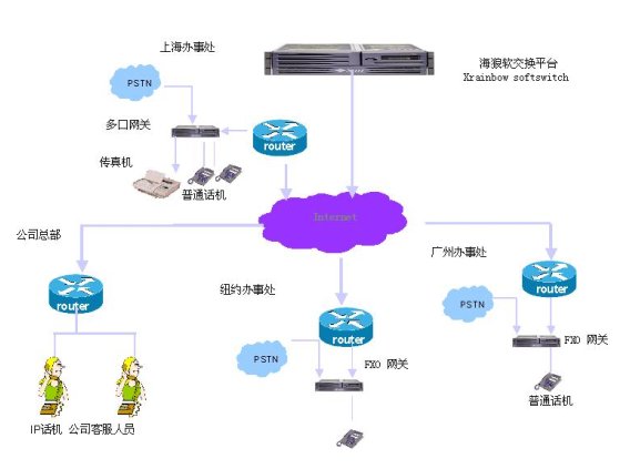 方案中,在公司總部架設(shè)一臺(tái)海狼IPPBX設(shè)備,公司總部需要有公網(wǎng)IP地址和公網(wǎng)保持連接。在各地辦事處只需在各地配備:帶FXO口的語(yǔ)音網(wǎng)關(guān),就可通過internet配合海狼網(wǎng)絡(luò)IP-PBX將當(dāng)?shù)乜头娫捵詣?dòng)轉(zhuǎn)入到總公司的客服電話上,這樣,公司的客服人員即可在本地實(shí)現(xiàn)對(duì)異地用戶的貼身服務(wù),而客戶并不能察覺,卻享受到了相當(dāng)于本地的服務(wù)。既可以為客戶及時(shí)解決問題,讓用戶感覺技術(shù)人員就在本地,同時(shí)也為公司節(jié)省通信費(fèi)用和人力方面的投資。本方案為公司提供的功能: