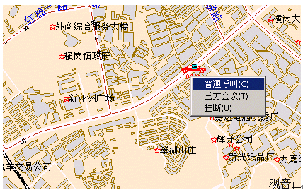 - 可視化指揮調(diào)度:在電子地圖上點擊相應的圖標即可撥打警力單位的固定電話以及向GPS巡邏車以及集群終端/公安分局/派出所/聯(lián)動單位電話號碼/手機號碼發(fā)起單呼和組呼;同時與接處警席配合使用,可以實現(xiàn)可視化指揮調(diào)度與非可視化指揮調(diào)度的全方位立體的混合指揮調(diào)度。
