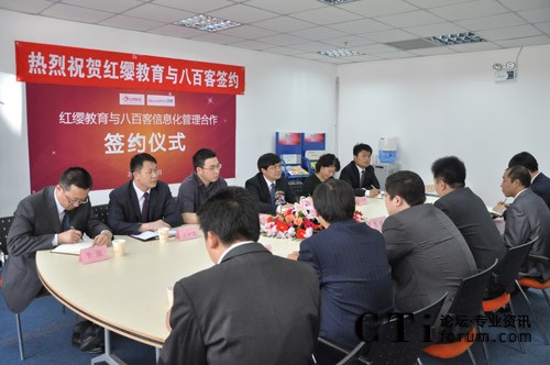 簽約當(dāng)日,八百客與紅纓教育在北京中關(guān)村軟件園舉辦隆重的“信息化管理啟動(dòng)會(huì)”。紅纓總經(jīng)理王紅兵、八百客CEO李智等參加此次項(xiàng)目的啟動(dòng)會(huì)。